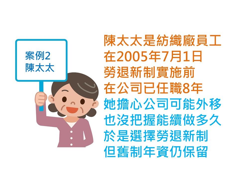 首先,適用勞退舊制有2類勞工,一是當初制度上路時已勾選舊制者,例如在鋼鐵廠工作長達15年的張先生,他有信心公司不會倒閉,也打算在工作崗位上一路做到退休為止;二是雖然已勾選新制,但是目前仍繼續留任原公司者,例如在紡織廠工作8年的陳太太,一方面擔心公司外移,也沒把握會不會有家庭因素中斷職涯,她索性選擇勞退新制,不過後來在原單位順順做到今日,像這樣的勞工,其實舊制年資是被保留的。