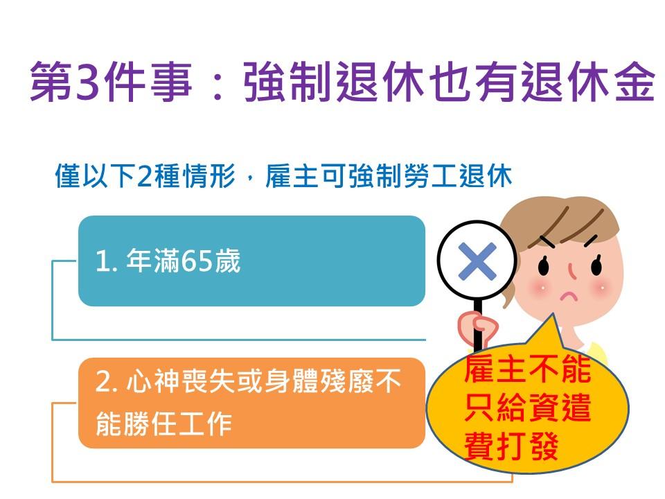 其次,很多勞工經常搞不清楚幾歲能領舊制退休金,要解釋的是,舊制的退休規定有2,一種是由勞工主動提出的「自請退休」,另一種則是由雇主提出的「強制退休」。不管是「自請退休」或「強制退休」,雇主都必須給付舊制退休金,尤其是強制退休部分,雇主不能只發資遣費打發勞工。