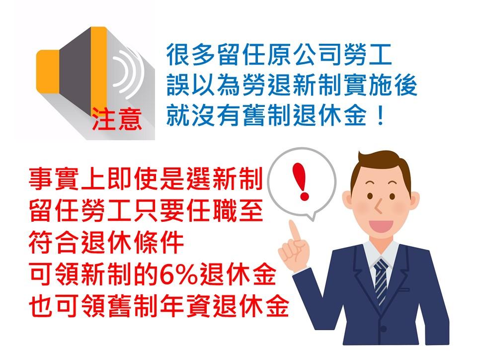 要提醒的是,舊制退休金的工作年資是以勞工任職於同一家公司為限,一旦勞工在退休前離職,舊制年資就會消失,不過,如果是像上述紡織廠陳太太那樣選擇新制,但仍在原工作崗位繼續任職至退休,日後她除了可以領到勞退新制雇主提撥的6%退休金之外,由於舊制年資也被保留,在符合舊制退休條件下,也可以跟雇主領舊制退休金,千萬別傻傻以為自己只能領一筆新制退休金!